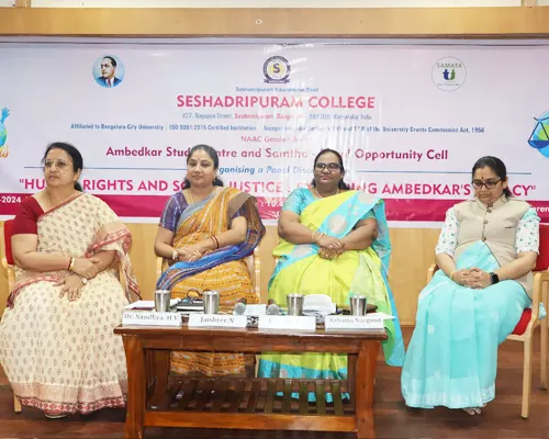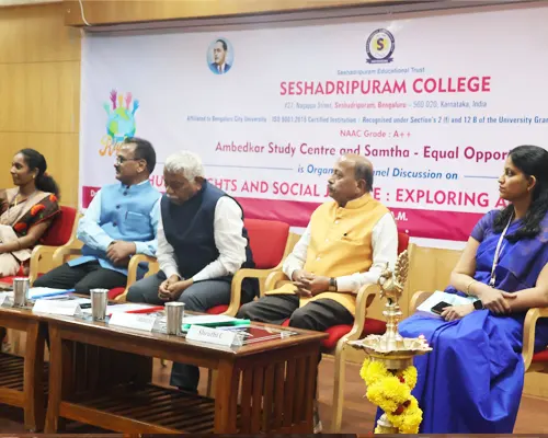The Ambedkar Study Centre at Seshadripuram College is a platform for studying and spreading the thoughts and contributions of Dr. B.R. Ambedkar, the principal architect of the Indian Constitution. This centre focuses on issues of social justice, equality, and empowerment, particularly concerning marginalized communities. The Ambedkar Study Centre regularly conducts discussions, lectures, and awareness programs to educate students about Ambedkar's vision for an inclusive society where everyone enjoys equal rights and opportunities.