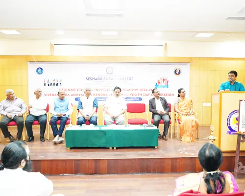 The Vivekananda Study Centre at Seshadripuram College aims to inspire young minds with the teachings of Swami Vivekananda. The centre is a hub for exploring the philosophical and spiritual insights that Vivekananda offered, with an emphasis on personal development, character building, and national pride. The study centre organizes a variety of programs, including motivational talks, workshops on personality development, and community engagement activities, all designed to imbibe Vivekananda's message of strength, unity, and selfless service.